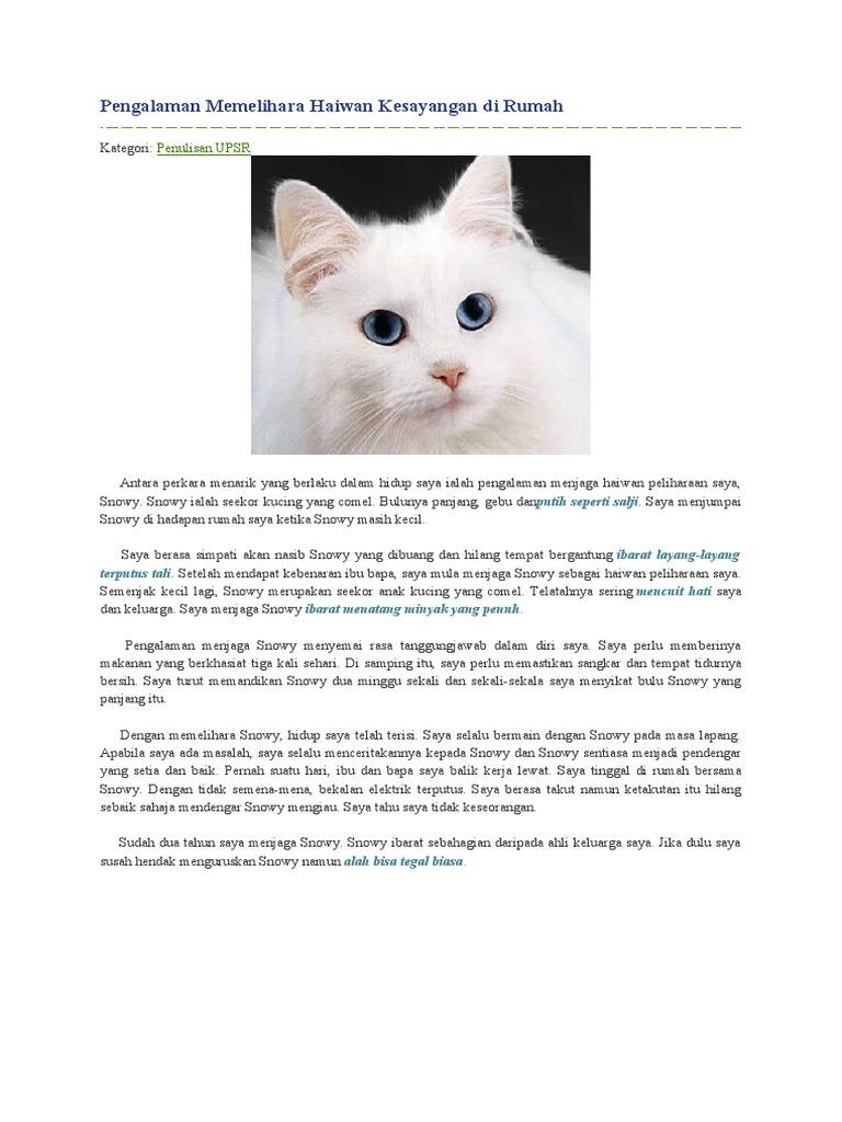 Saya memberi nama kucing itu ialah Comel. Binatang kesayangan saya ialah kucing. A Short Summary Of This Paper.